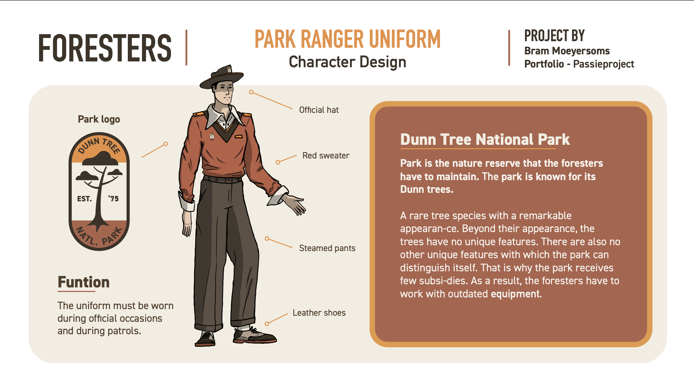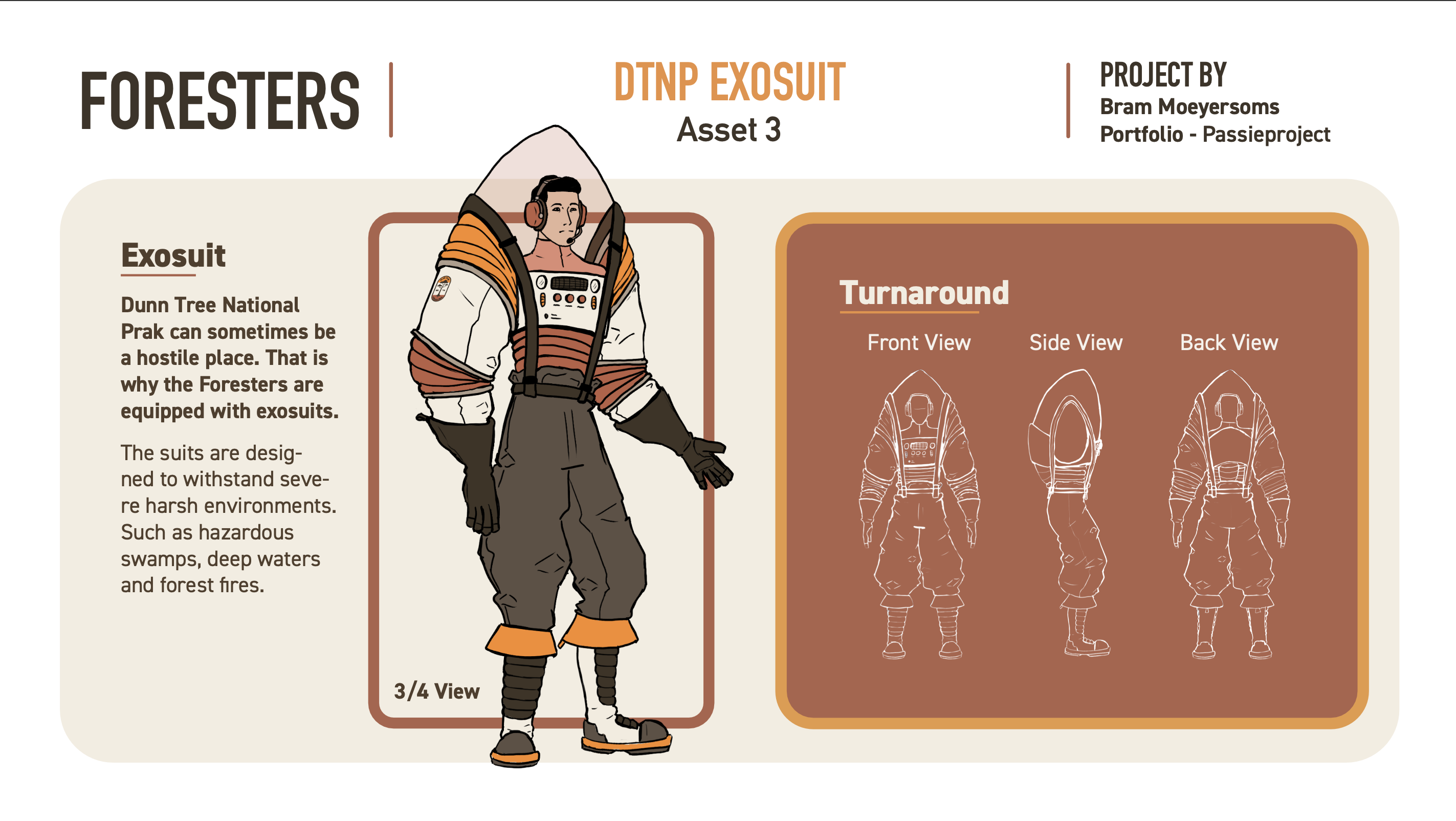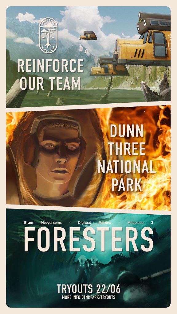 Foresters is een concept art project waarvoor ik ook een brandig heb gemaakt. Voor dit project heb ik een verhaal bedacht rond een boswachter-corps in een retro futuristische wereld. De concept art stukken en de brandig elementen zijn hoofdzakelijk geïnspireerd door designs uit de jaren 70. Hier kan je de volledige presentatie bekijken.